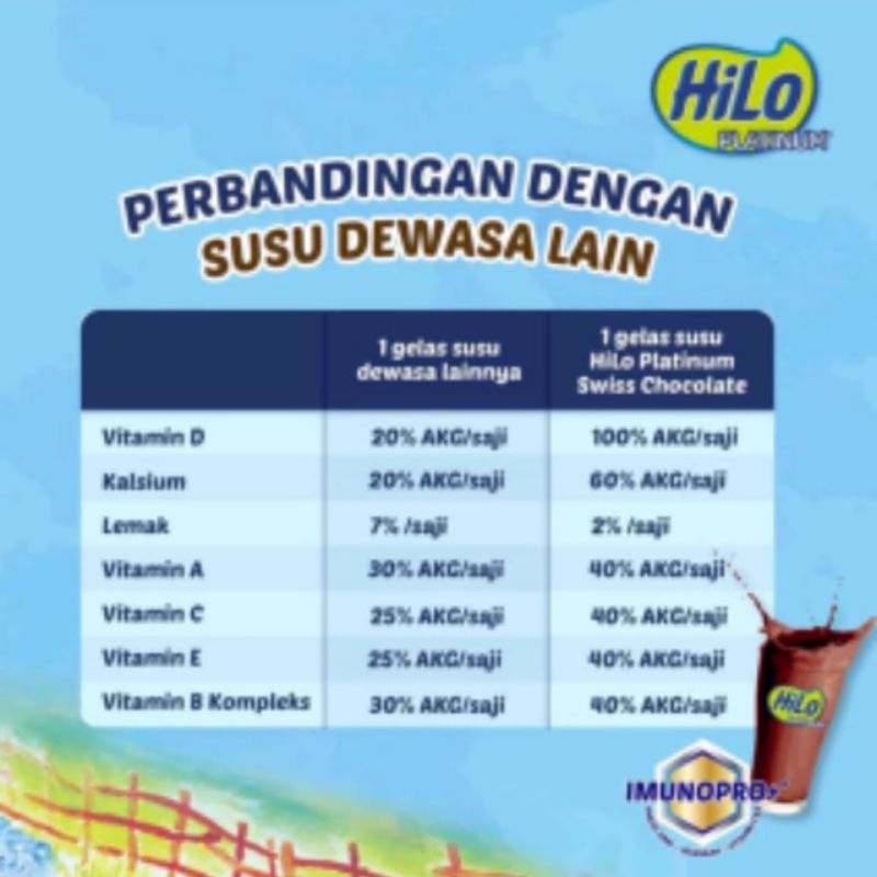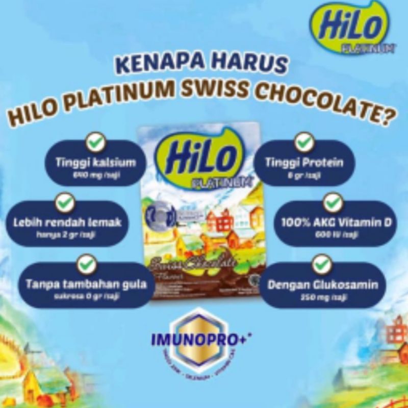 HILO PLATINUM SWISS CHOCOLATE 420 GR (12 SACHET & 35 GR) Susu Tinggi Kalsium