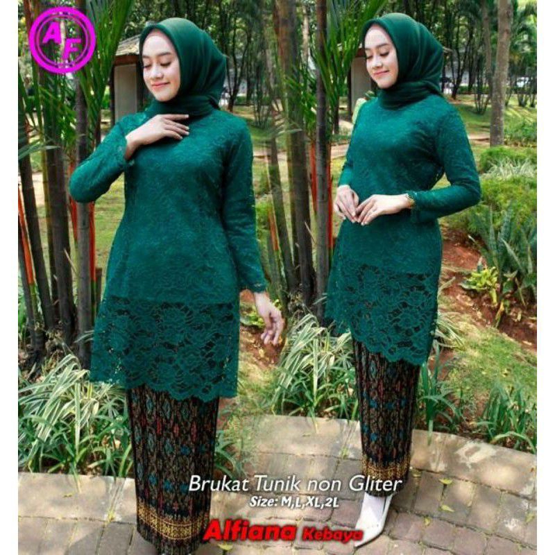 Set Kebaya Tunik Brukat Modern Wanita Muslim Pesta Brukat