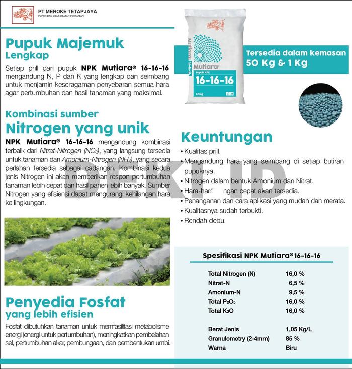 Promo Pupuk NPK Mutiara 161616 - 1 Kg Meroke Kem4san Pabrik Nutrisi Pertumbuhan Tanaman Buah Sayur Deki Keren