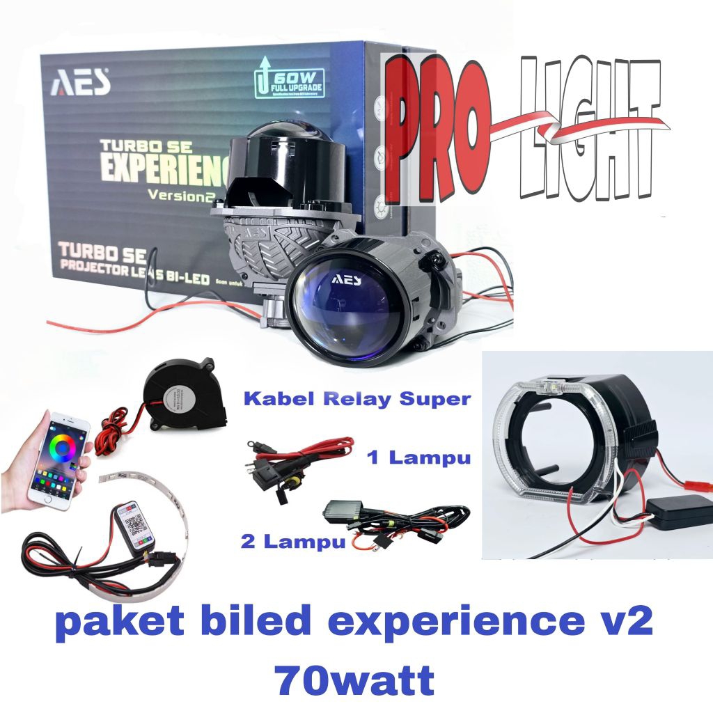 Paket lengkap Biled AES Turbo Se Experience V2 2.5 Inch 70 watt Merk AES