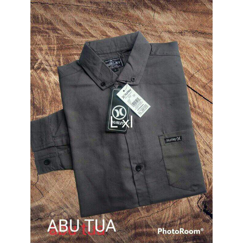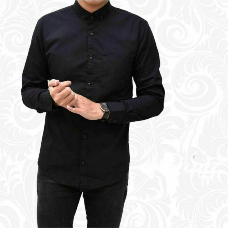 Kemeja pria polos lengan panjang distro slimfit premium warna hitam putih basic casual