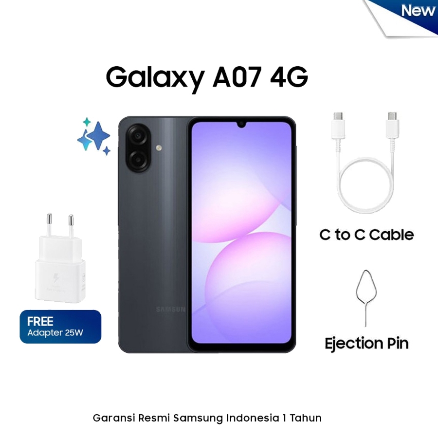 Samsung Galaxy A07 4G/LTE - RAM 4GB, 6GB, 8GB - Internal 128GB & 256GB - MediaTek Helio G99 | 50MP + 5MP | Layar 90Hz 6.7" PLS LCD, IP54 | Android 15 - GARANSI RESMI SEIN