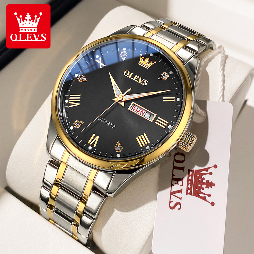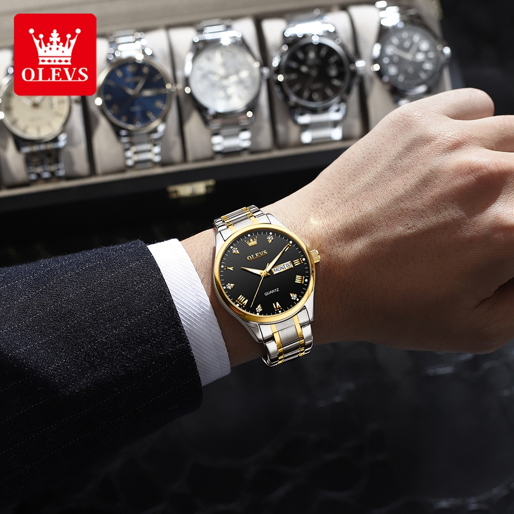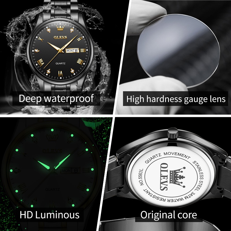 OLEVS Jam Tangan Pria Anti Air Original Mewah Analog Fashion Hitam Men Watch Model 5563