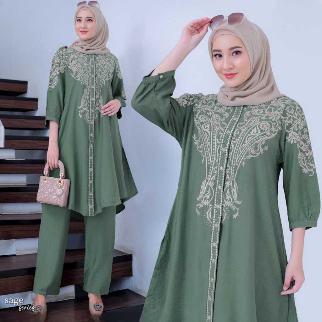 Berilda Oneset Mewah Cringkel Airflow Mix Bordir Cantik Setelan Muslim Terbaru Ukuran L,XL DAN XXL