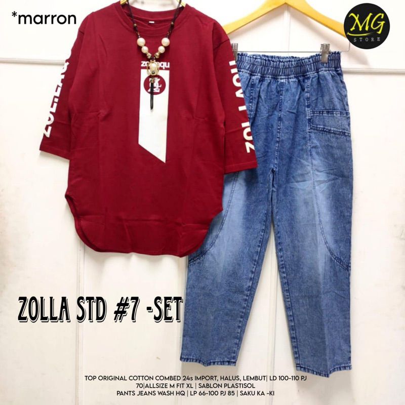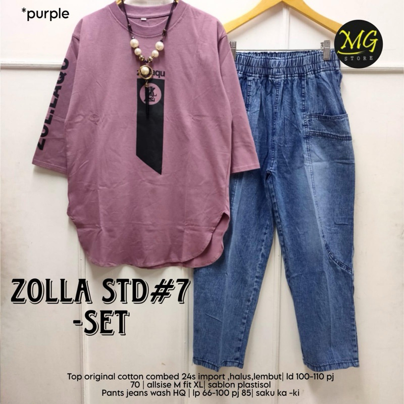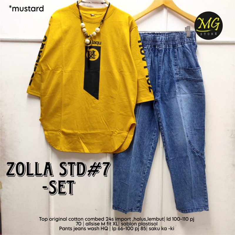 ZOLLA SET STANDAR #7 setelan wanita/Ld 100cm melar 110cm Pj 70cm/Celana Jeans Wash Premium Pinggang karet Lp 66 melar