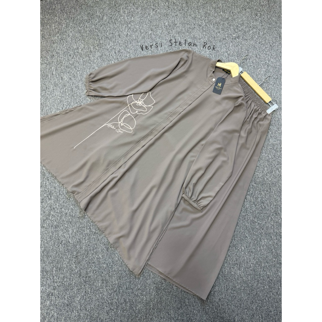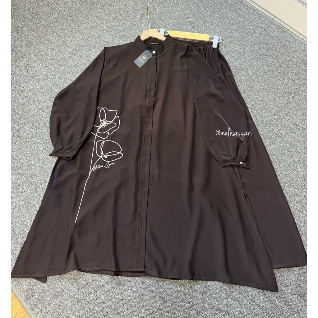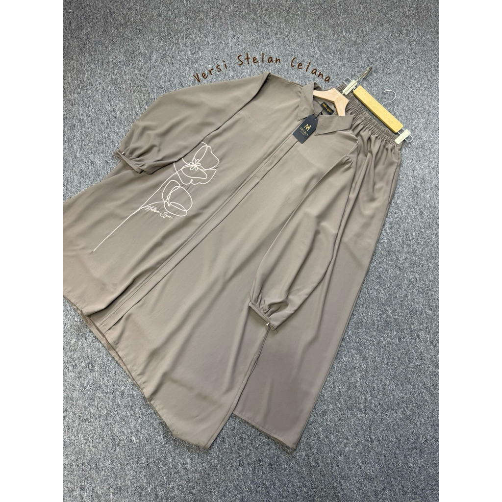 Kaluna Oneset Bordir Longtunik Marina silk 2 versi [ STELAN ROK & STELAN CELANA ] by Melisa Syari