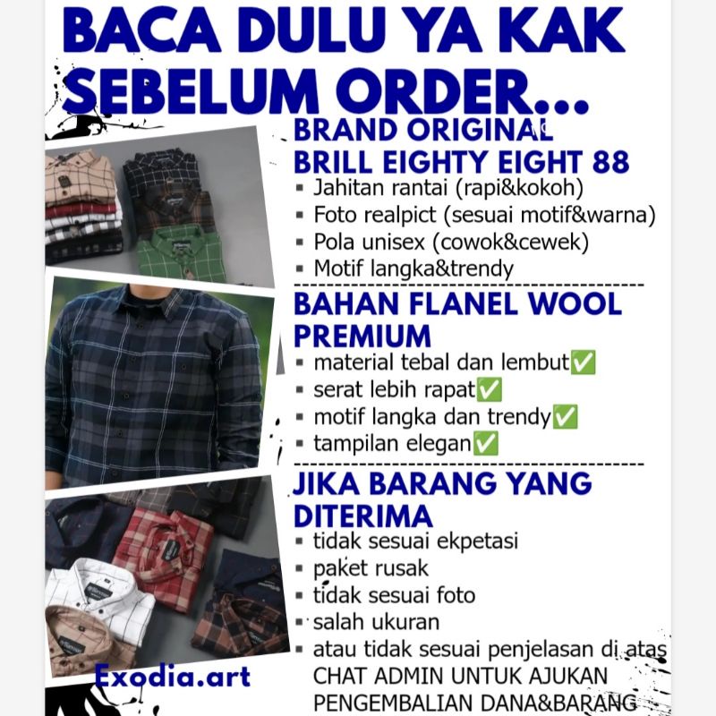 Kemeja Flanel Premium Brill Eighty Eight 88 Kemeja Pria dan Wanita Exodia art Pola Uniseks Terlaris hem lengan panjang