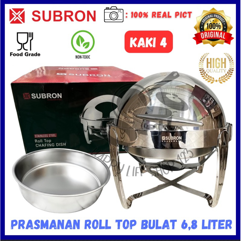 SUBRON Round Chafing Dish / Prasmanan Roll Top Stainless Steel 6.8 Liter Tutup Stainless / Roll Top Bulat 6.8 Liter