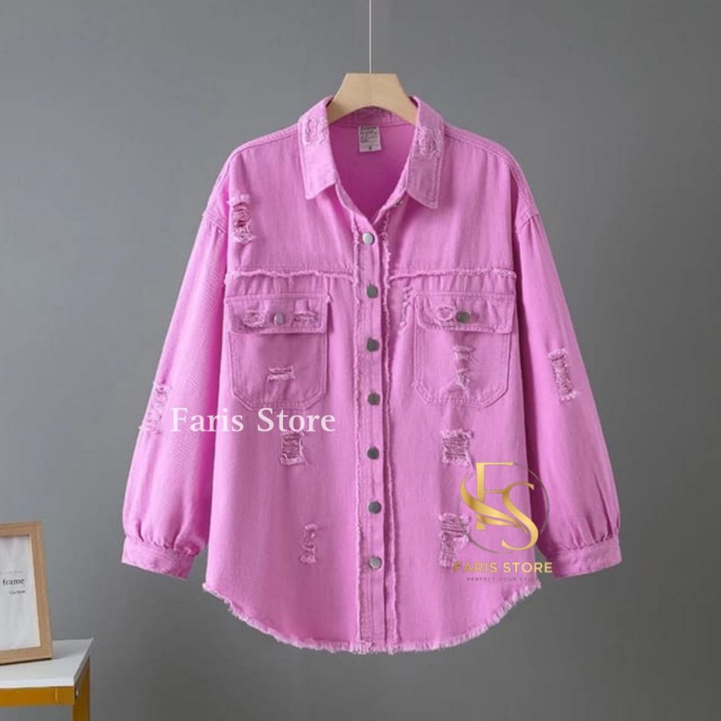 Jaket Jeans Oversize Sobek Rawis Jumbo Wanita Terbaru Kekinian Korean Style