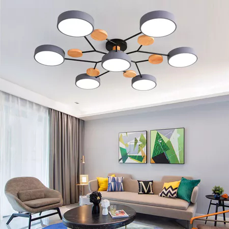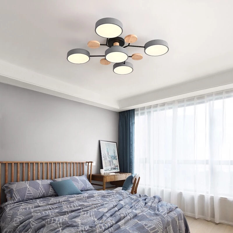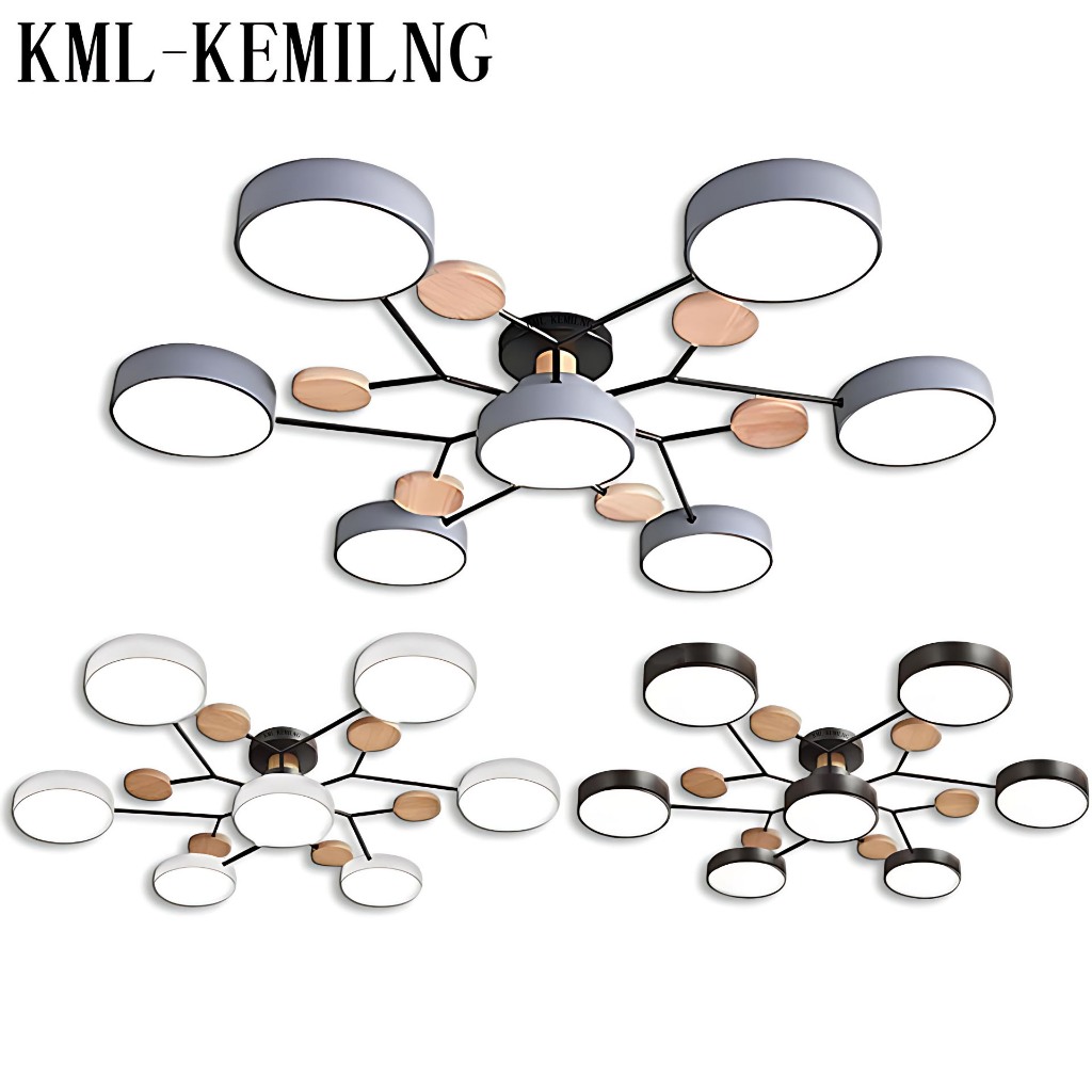 KML-KEMILING Lampu Plafon LED Tiga Warna Macaron Kayu Modern Minimalis 7 Kepala 5 Kepala Tricolor Ceiling Light untuk Ruang Tamu Kamar Tidur Dapur