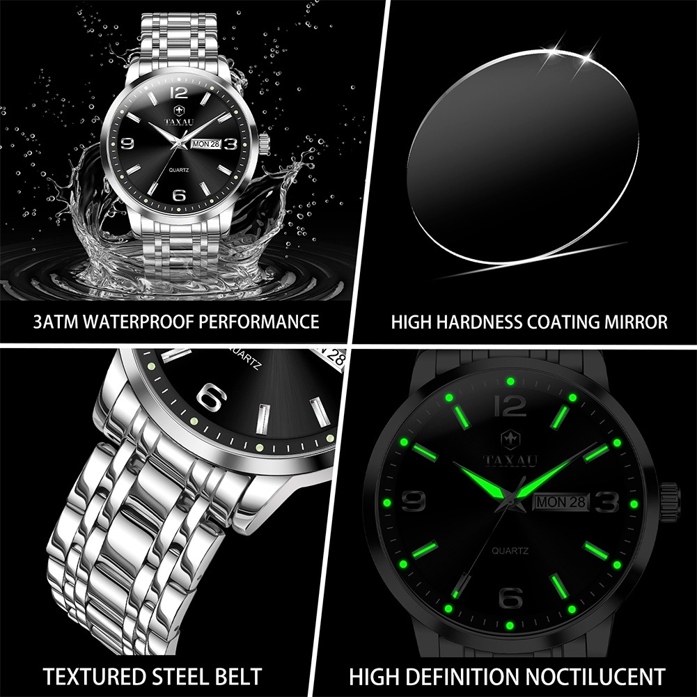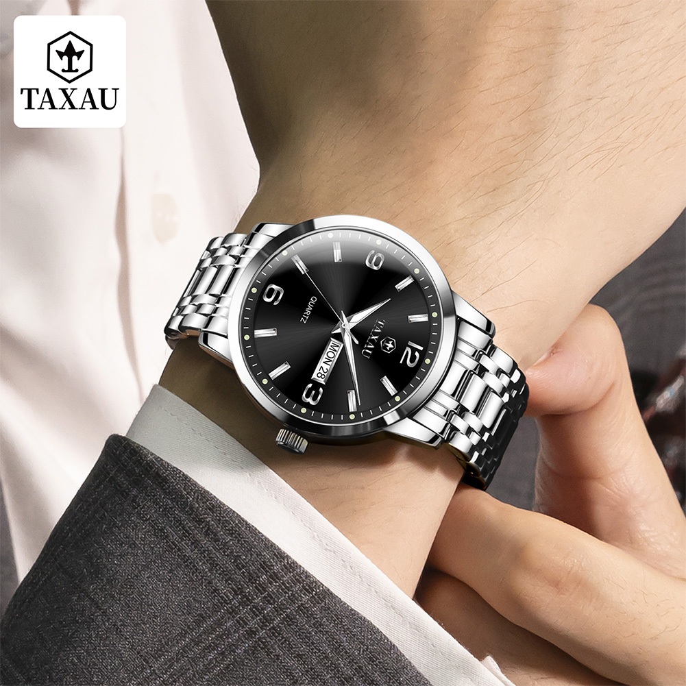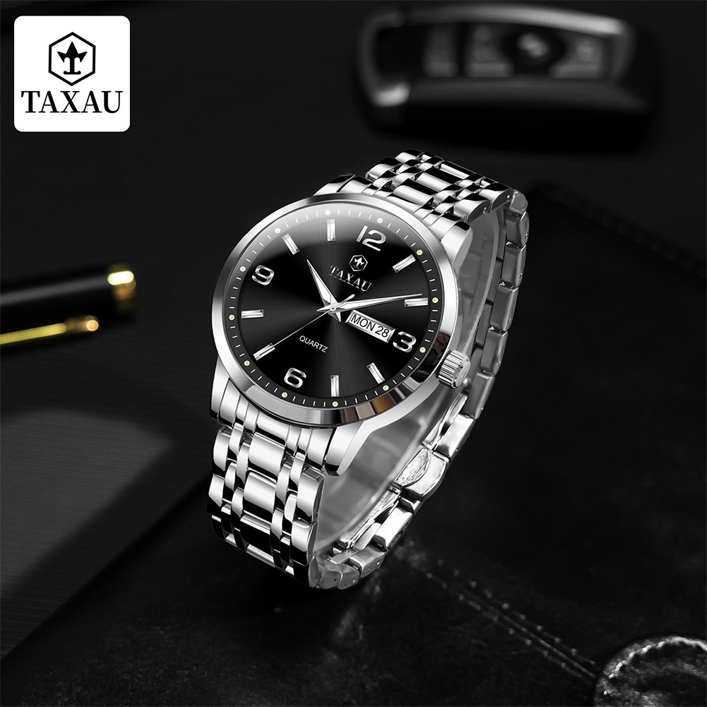 TAXAU Jam Tangan Pria Original Anti Air Cowok Jam Tangan Pria Rantai Kalender Luminous Analog Arloji Bisnis Fashion Men Watches Mode 8411
