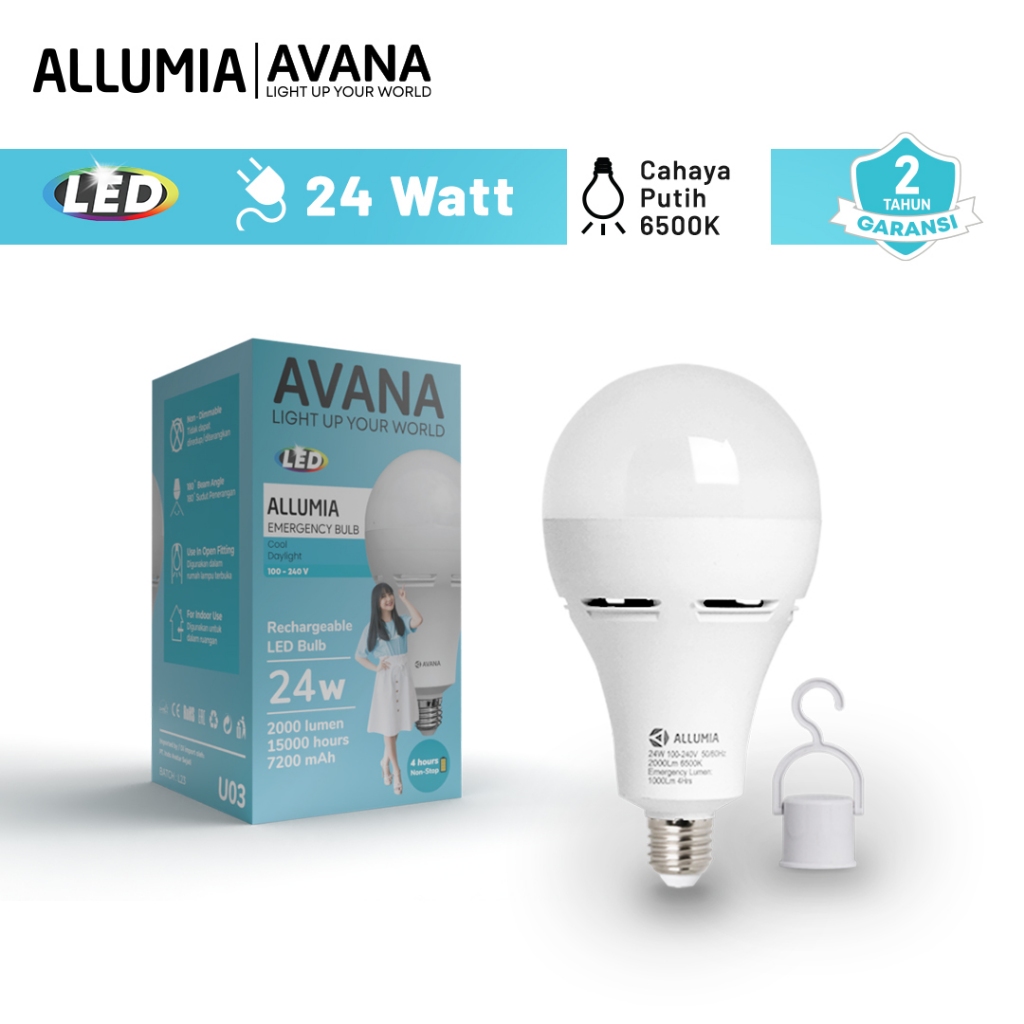 ALLUMIA Bulb Emergency Rechargeable Lampu Led 24 Watt 6500K Putih Cool Daylight Lampu Bohlam Rumah U03