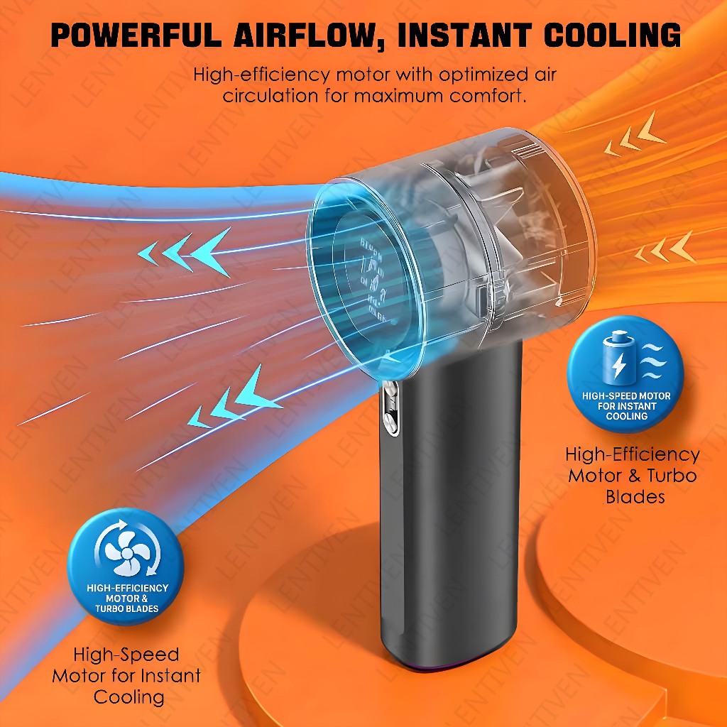 BOEIN LENTIVEN Kipas Turbo Kecepatan Tinggi Portabel Semikonduktor Genggam Fan Pendingin Mini Meja Tampilan Digital Olahraga Dapat Dilipat 5 Kipas GS