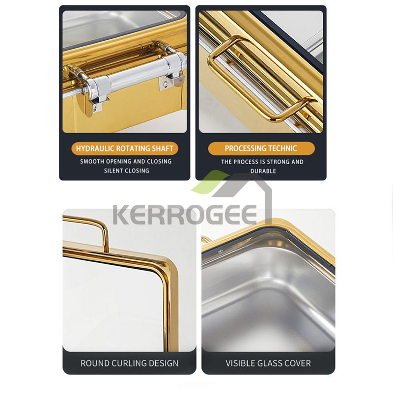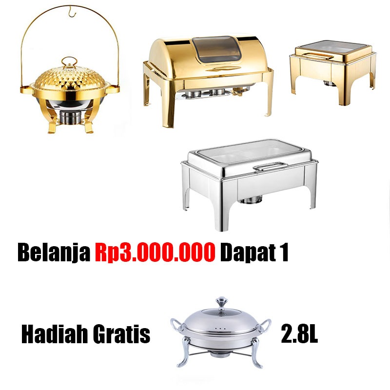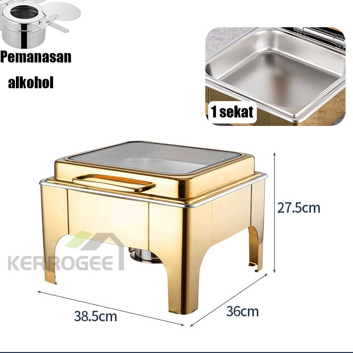 Chafing Dish kecil gold Roll top prasmanan 6L Stainless Steel rolltop tempat penyimpanan makanan prasmanan bagus