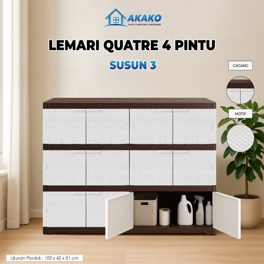 AKAKO - Lemari Plastik MEGA JUMBO 4 Pintu - Rak Susun Serbaguna - Kabinet TV muat 43/50 inch