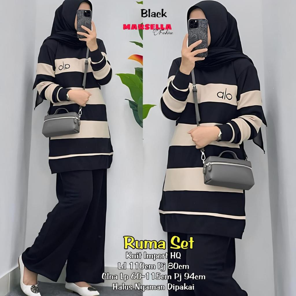 RUMA SET BY MARSELLA / SETELAN WANITA ATASAN MIX CELANA BAHAN KNIT BEST SELLER