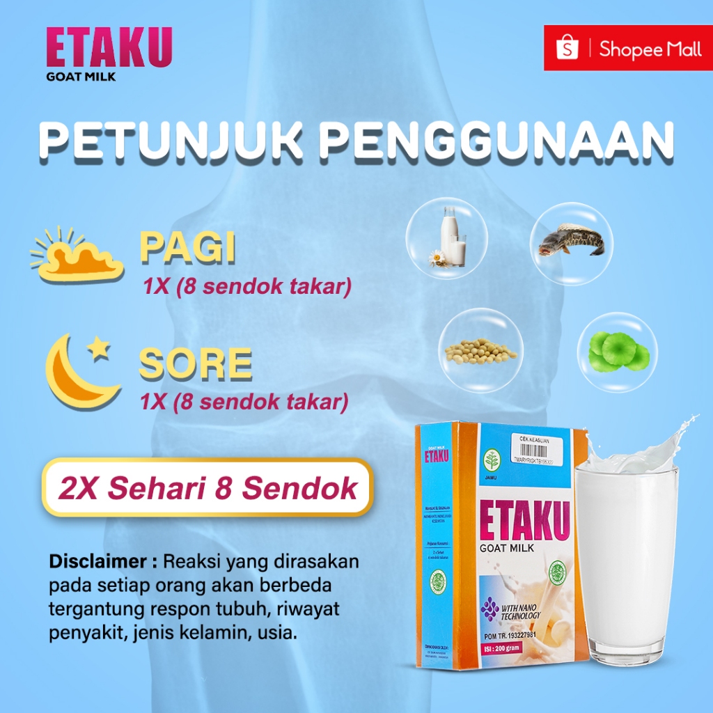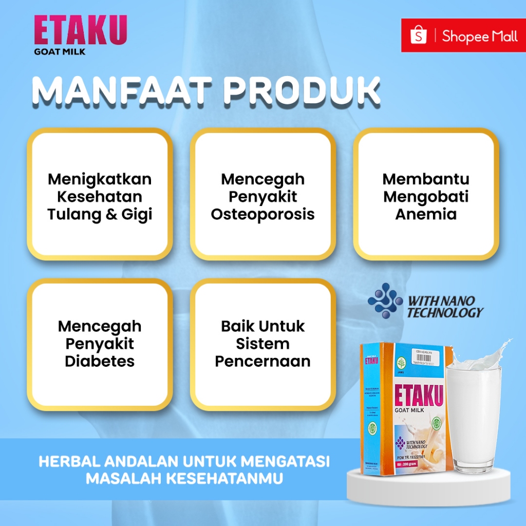 Etaku Susu Kalsium Peninggi Badan Anak Bahan Dasar Susu Kambing Etawa Murni Sudah Bpom & Halal MUI