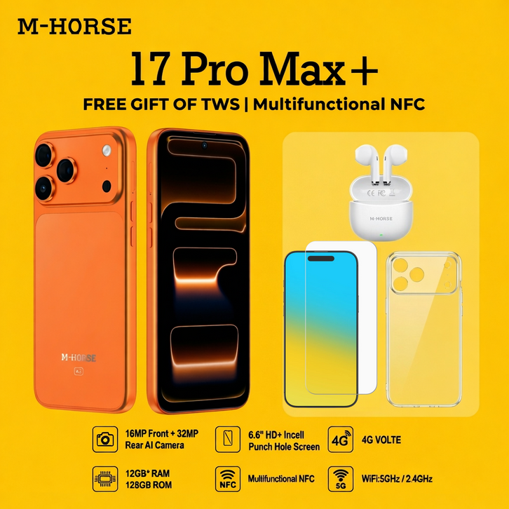 M-Horse 17 Pro Max+ 4G 6GB+128GB Memori Asli, Dual SIM, Layar HD, Mendukung NFC, Gratis Headset Bluetooth,