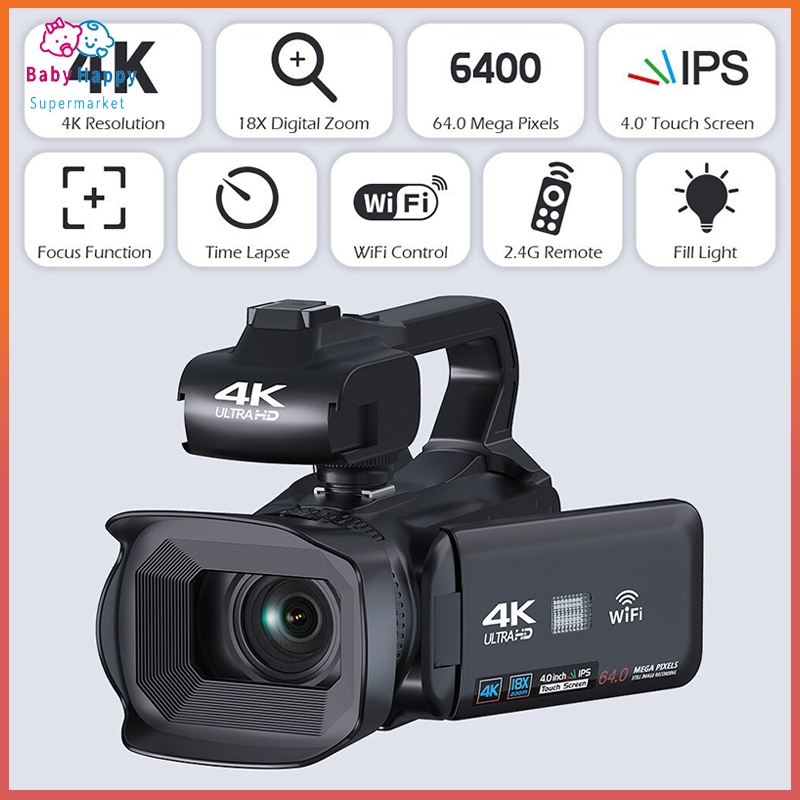 64MP 18X Zoom 6K 60FPS HD Kamera Video Digital Wifi Camcorder HD Untuk Fotografi Streaming Langsung Vlog Kamera Video Layar 4 Inci Perekam Digital AF
