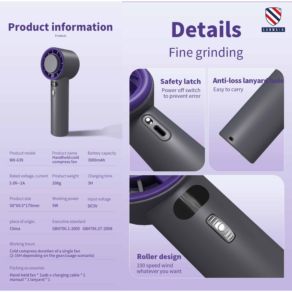 Lanwain WX637 Portable Turbo Fan High Speed Mini Cooling Time Rechargeable Person Fan For Home Outdoor