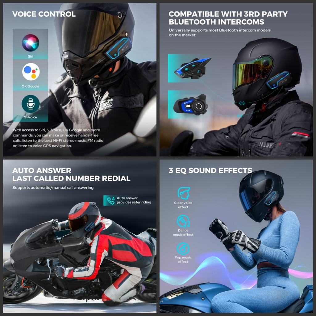 GEARELEC GX10 Bluetooth 5.2 Helm Sepeda Motor Interkom Hingga 10 Pengendara IP67 Tahan Air bisa berbagi musik dengan FM
