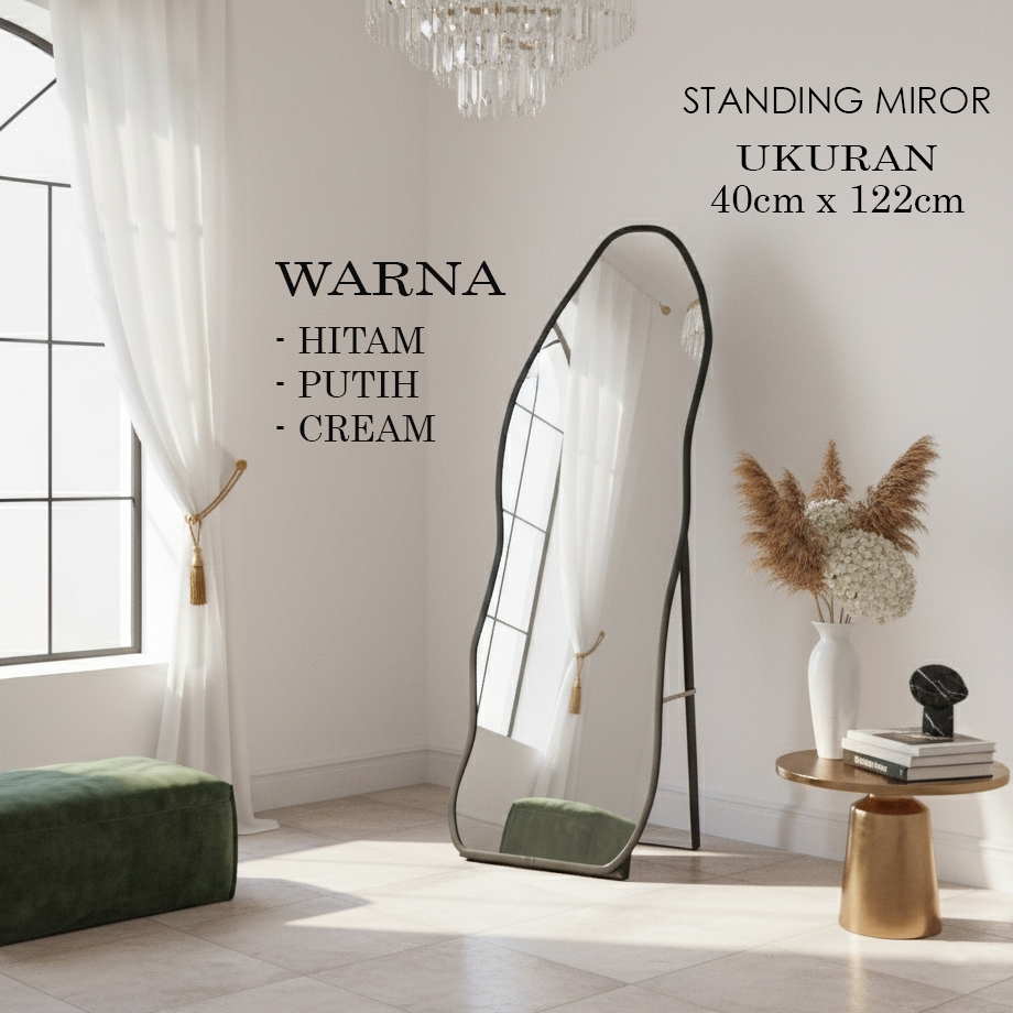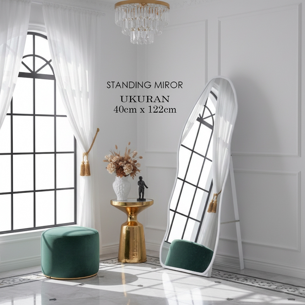 [ Free Packing Kayu] Standing mirror aesthetic full body rubber klasik,Abstrak 40x153 Premium