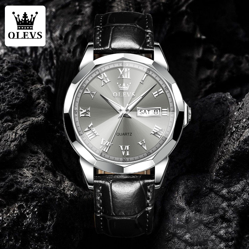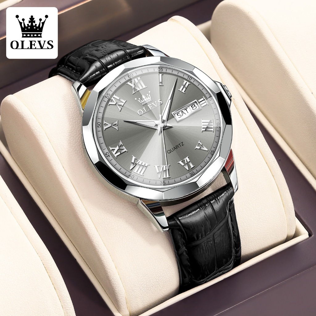 OLEVS Jam Tangan Pria Anti Air Original Kulit Analog Quartz Arloji Bisnis Fashion Men Watch 9990