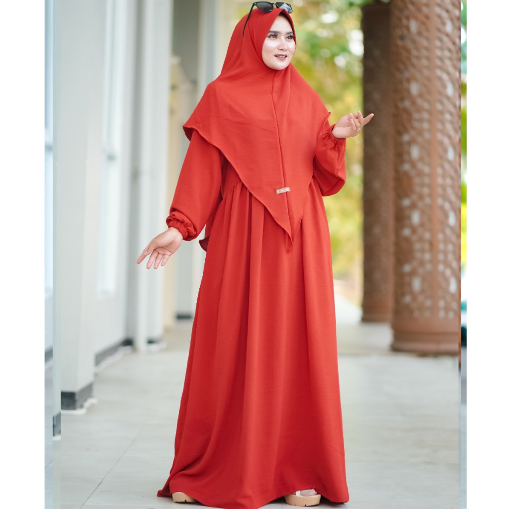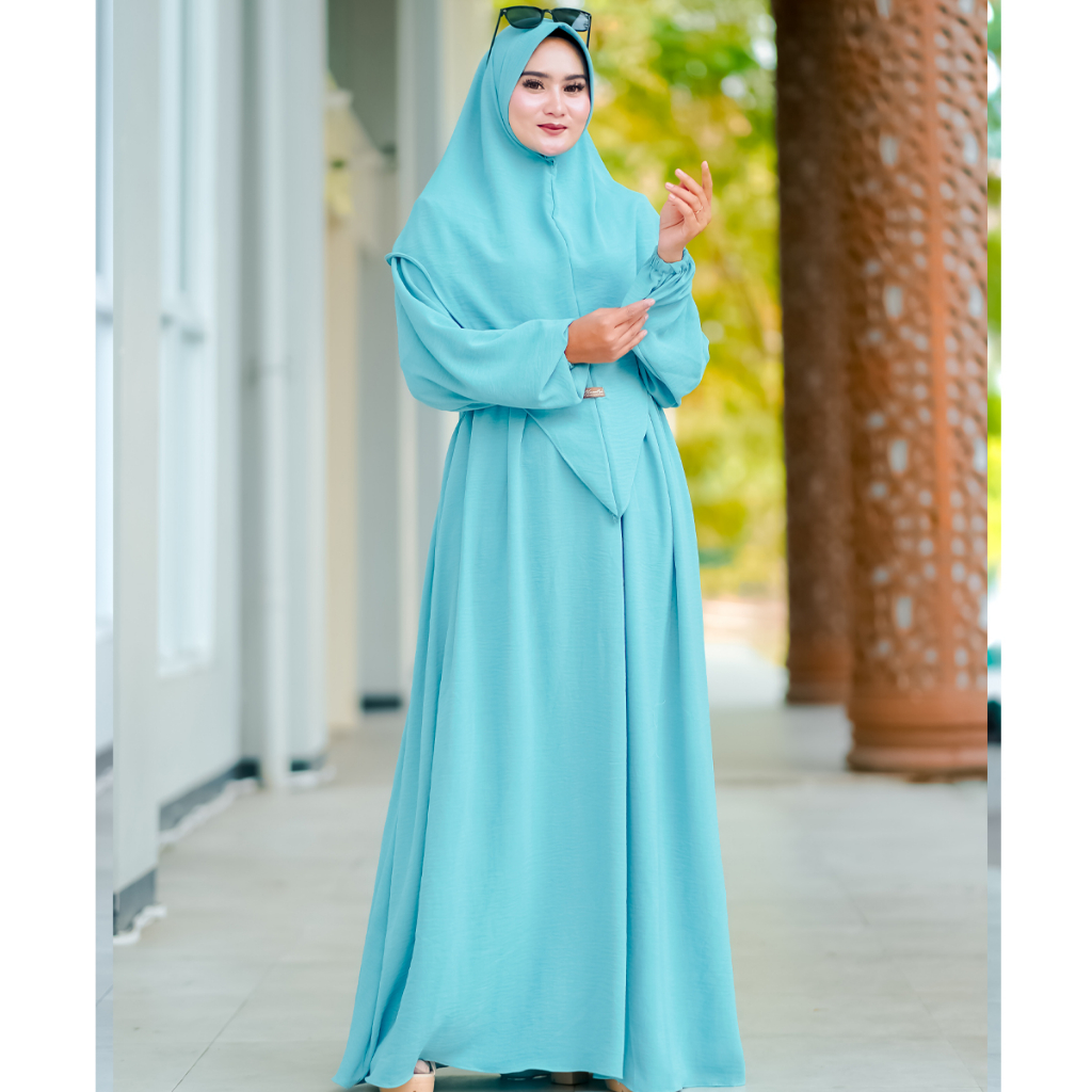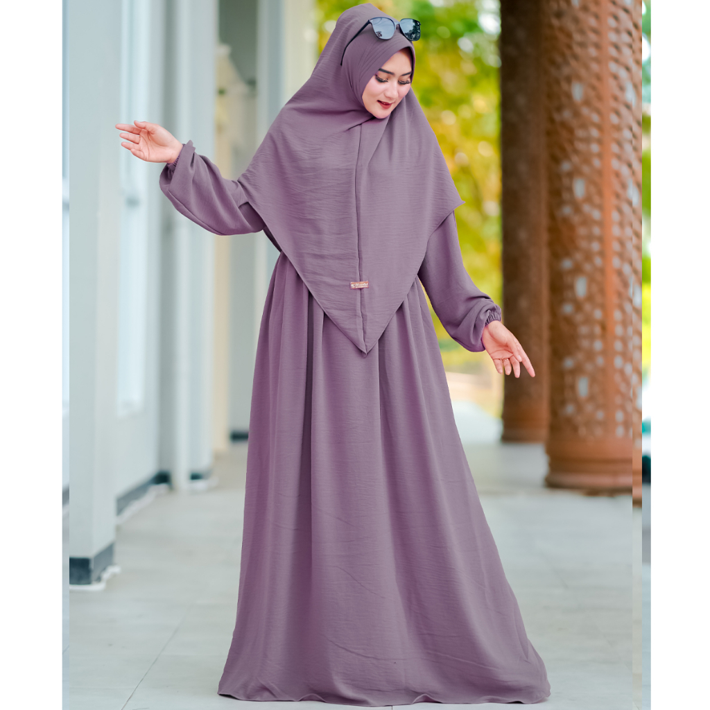 Gamis Set Hijab Luna Syari Bahan Crinkle Airflow - Gamis Elegan Simple - Gamis Terbaru Viral