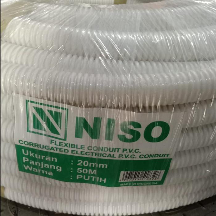 [ROLL] NISO FLEXIBLE CONDUIT SELANG PIPA 20MM FLEXIBEL PUTIH 50M