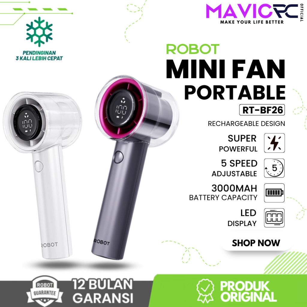 ROBOT RT-BF26 Mini Fan Portable Handheld Powerful Cooling LED Indicator Kipas Angin Portable 5 Speed Original - Garansi 1 Tahun