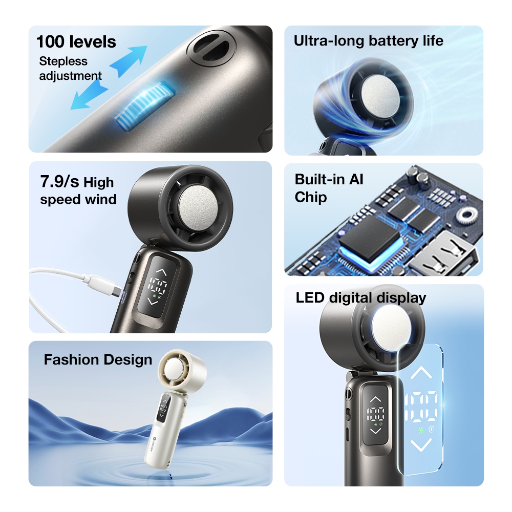Jamay Kipas Portable Kipas Mini 100 Gear Cooling Fan 135° Foldable LED Display High Speed Fan F7Pro