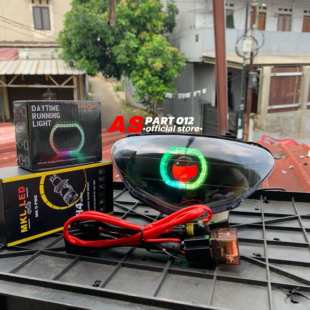 Lampu MIO SPORTY Biled H4 Lengkap Shround Akrilik Rgb App mode terbaru Ring Crystal H4
