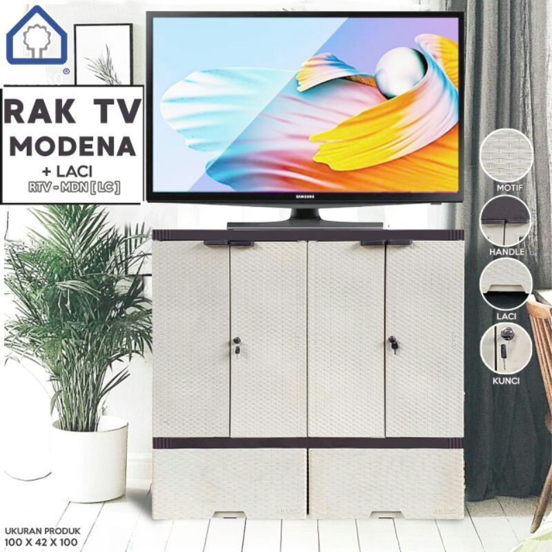 AKAKO - Lemari Jumbo Rak TV + Laci + Kunci ( 4 Pintu + 2 Laci )