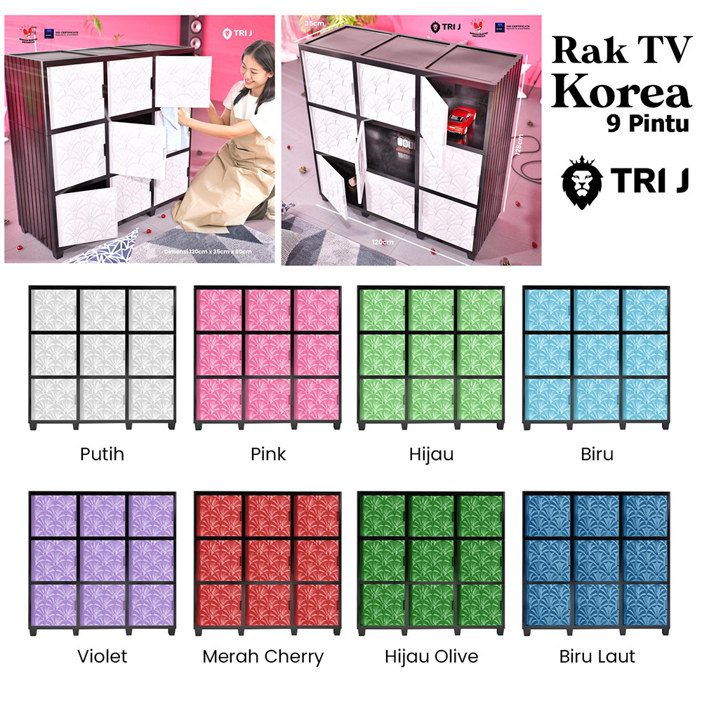 TRI J Lemari TV 9 PIntu Plastik ern Minimalis Rak Susun Televisi Serbaguna