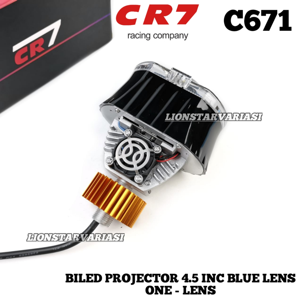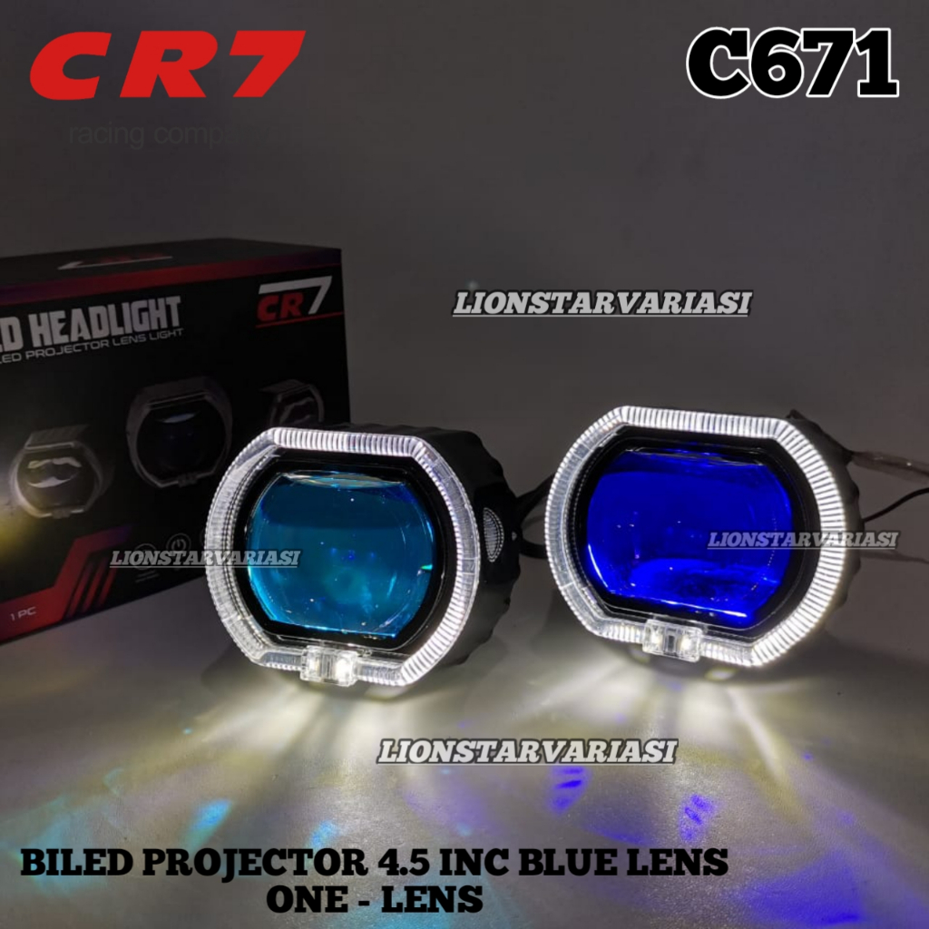 CR7 C671 - Biled Projector 4.5 Inch Blue Lens Plus Devil Shroud High Low Flat Cut Ngedim Motor Mobil