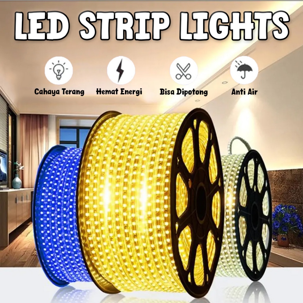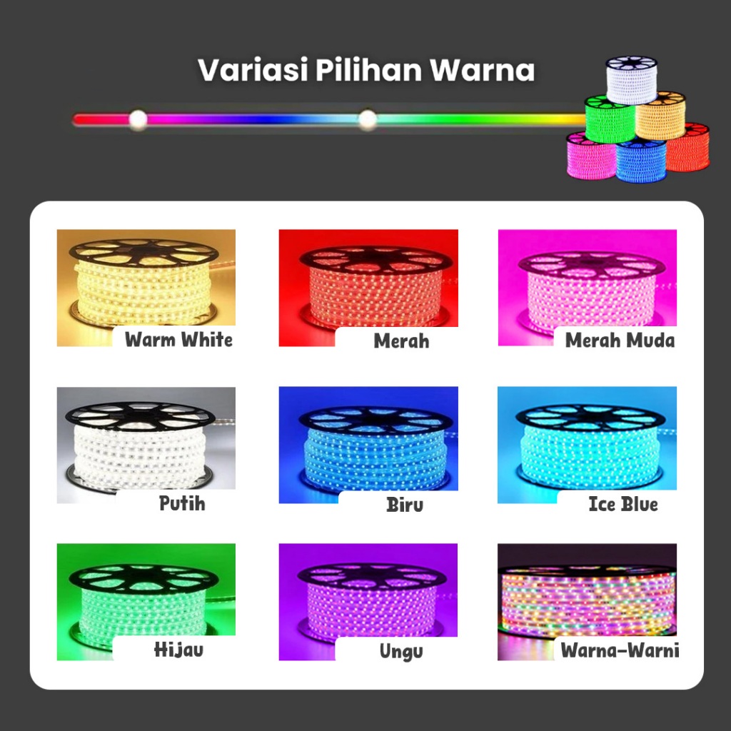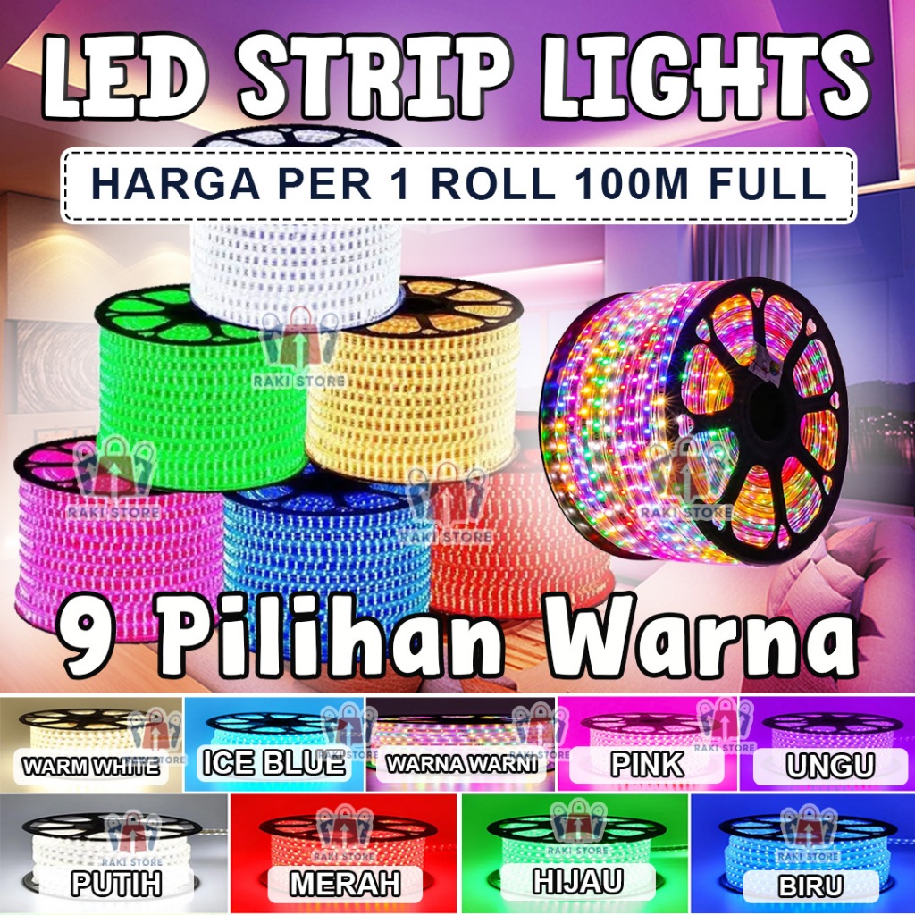 LED STRIP SELANG 5050 / 2835 / 3528 AC 220V 1 Roll 100M OUTDOOR SEMUA WARNA PUTIH BIRU MERAH ICE BLUE WARM WHITE UNGU PINK HIJAU Free Ongkir