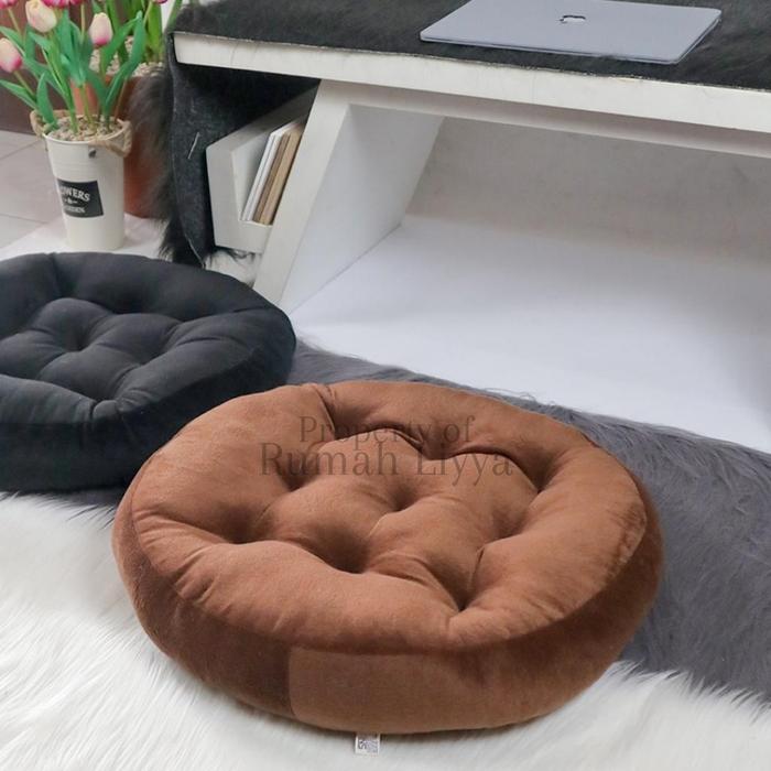 RUMAHLIYYA ALAS BANTAL DUDUK LESEHAN BULAT JUMBO - CUSHION FLOOR LEMBUT - HITAM, 10X40