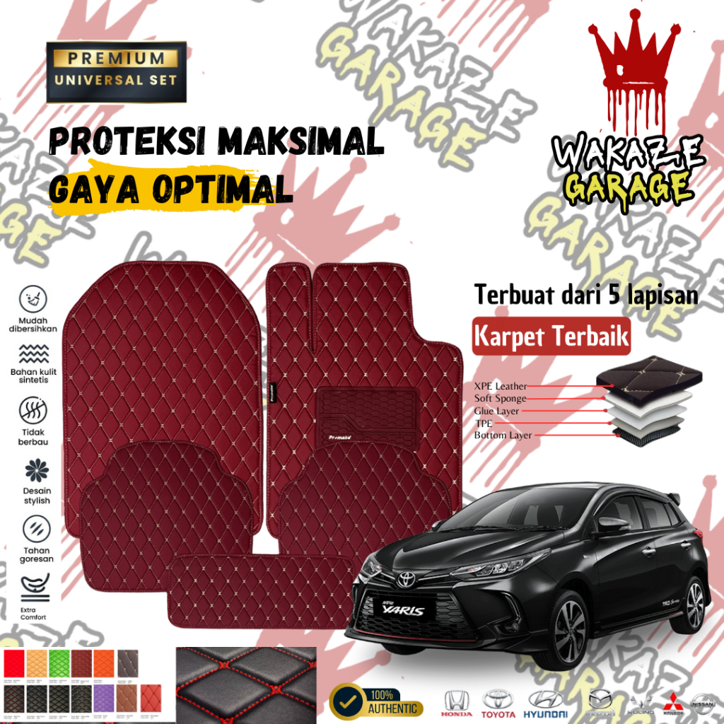 Wakazegarage Universal Car Mats Leather 5 Pcs - Karpet Mobil Kulit Karpet Mobil Universal Kulit Waterproof Premium Mudah Di Bersihkan Anti Sobek Tahan Panas
