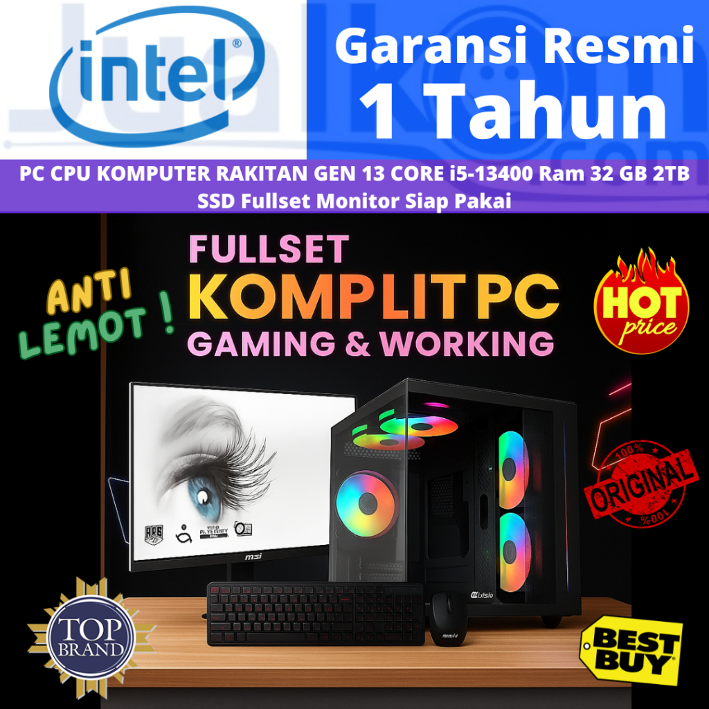 PC CPU KOMPUTER RAKITAN GEN 13 CORE i5-13400 Ram 32 GB 2TB SSD Fullset Monitor Anti Lemot Siap Pakai