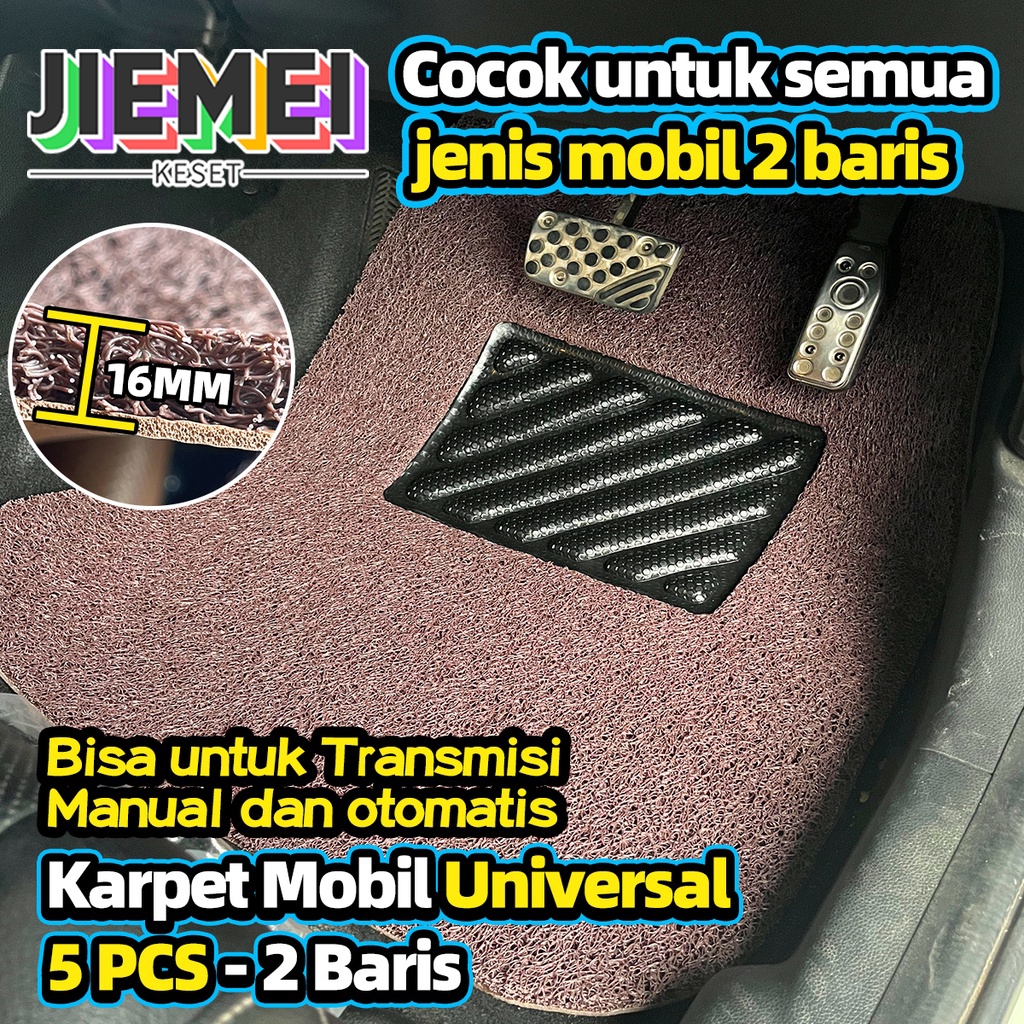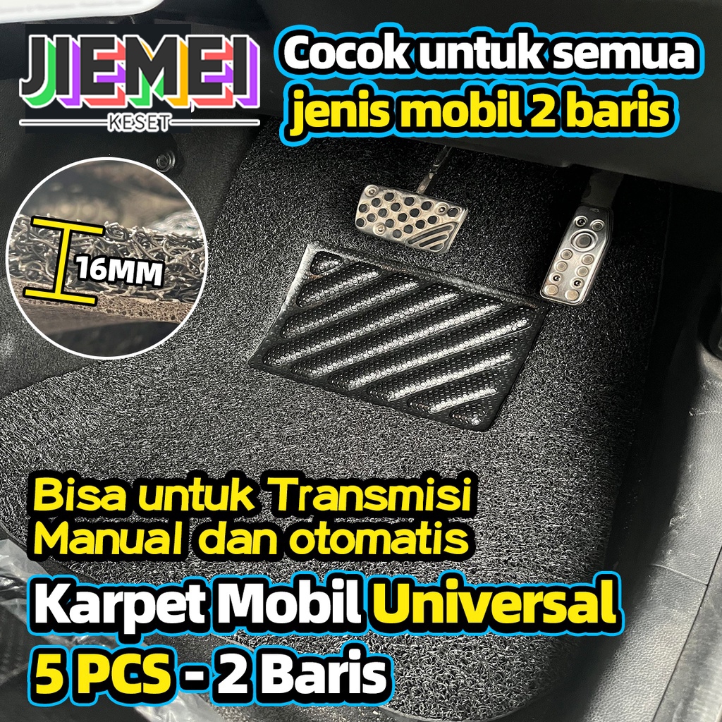 JIEMEI Karpet Mobil 5 Pcs 2 Baris Universal - Mie Bihun PVC - Ketebalan 16MM/ Universal bisa diaplikasikan ke semua mobil
