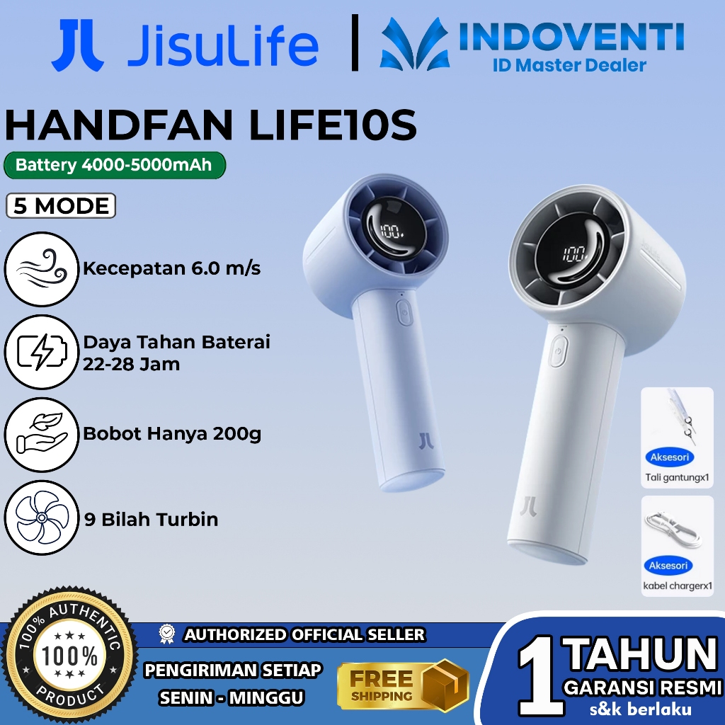 JisuLife Life10S Handheld Fan Kipas Angin Mini Genggam Portable 5 Kecepatan USB Type C 5000mAh