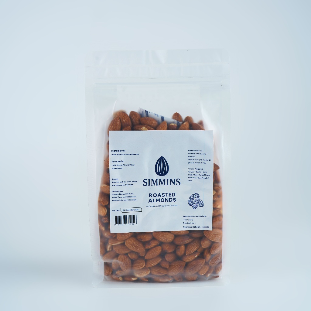 Kacang Almond Panggang Kupas Utuh Premium 500 Gram Siap Di Konsumsi- By Simmins