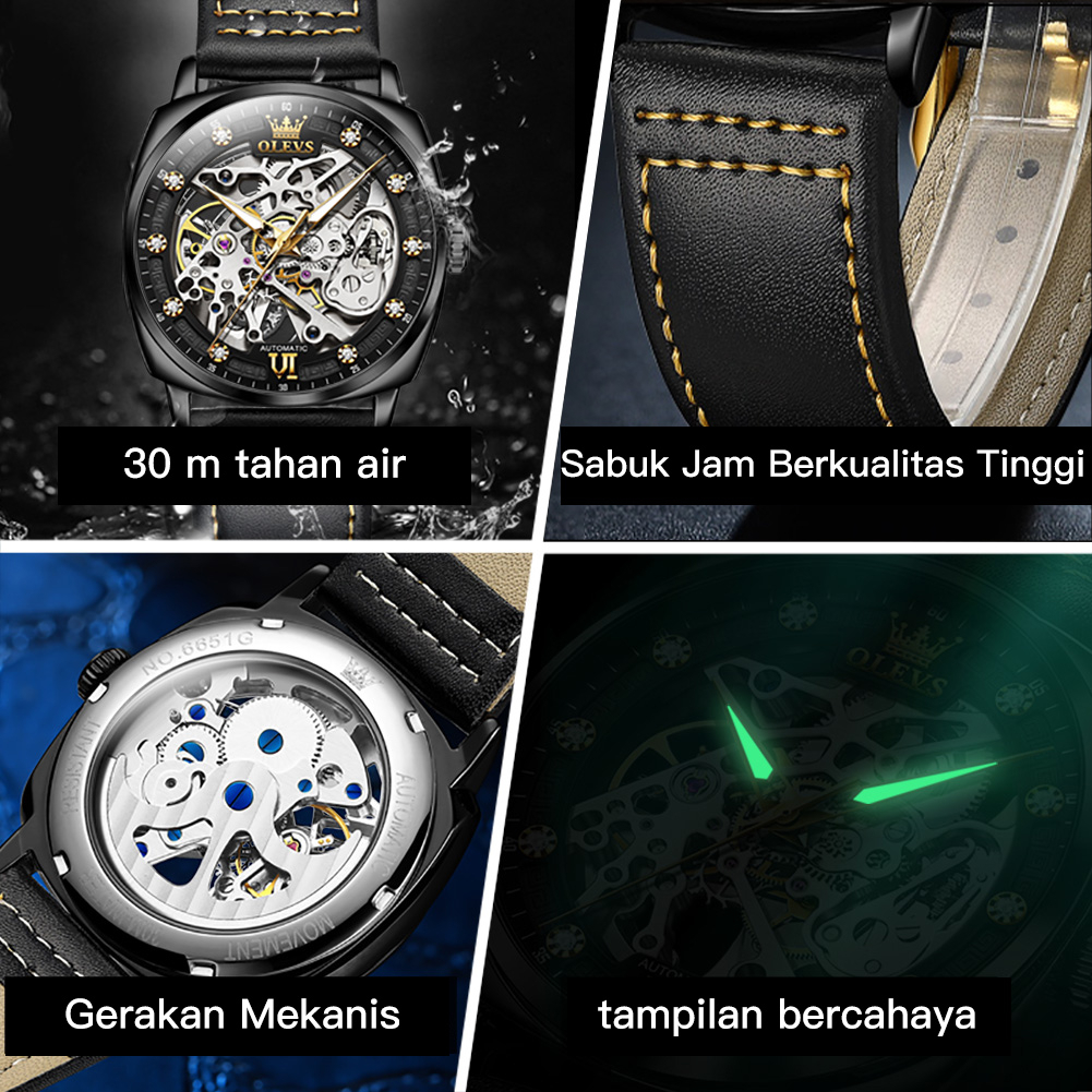 OLEVS Jam Tangan Automatic Pria Anti Air Original Tahan Keren Led Terbaru Luxury Watch Men