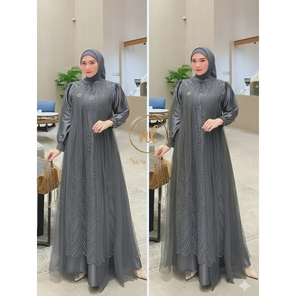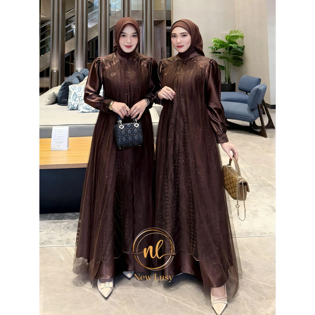 Aulia Dress Brukat Satin Velvet Premium Kombinasi Tille Sparkel Gamis Pesta Kondangan Simple Elegan