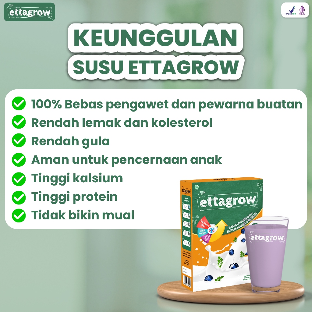 Ettagrow Susu Peninggi Badan Anak 3-12 Tahun Penambah Nafsu Makan Solusi Sehat & Kuat Original