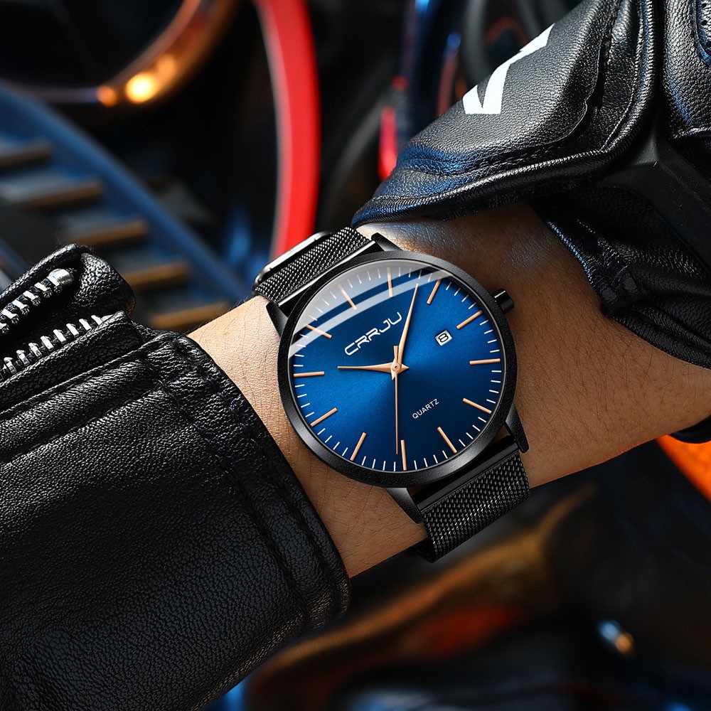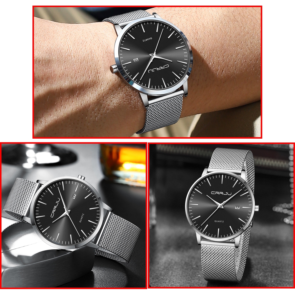CRRJU Jam Tangan Pria Fashion Kuarsa Ultra Tipis Jam Tangan Cowok Olahraga Kasual Tahan Air