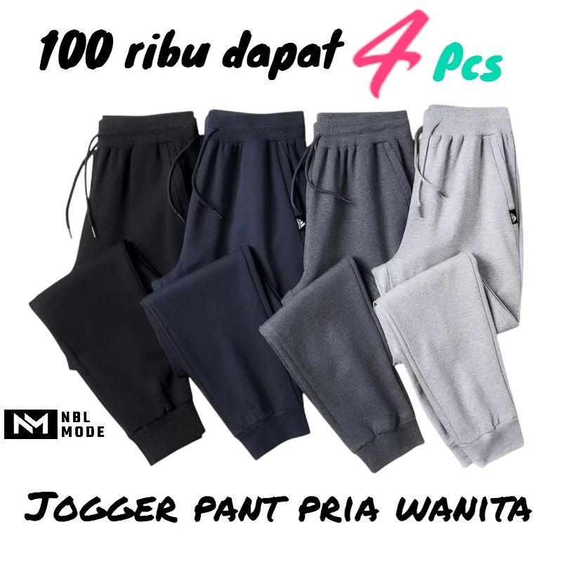 4 Pcs Celana Joger Panjang Training Pria Wanita Unisex Jogger Sport Olahraga Zipper Bahan Fleece