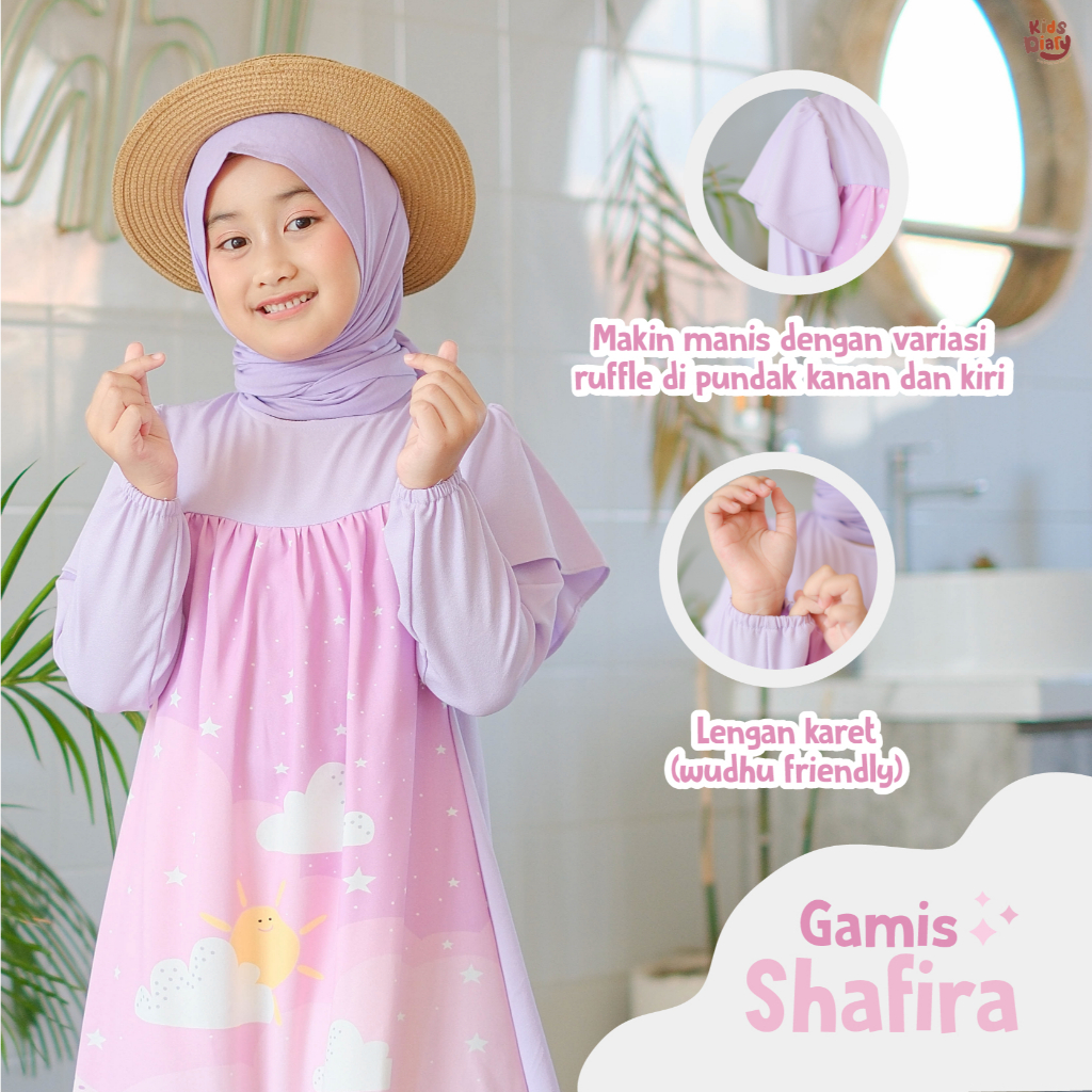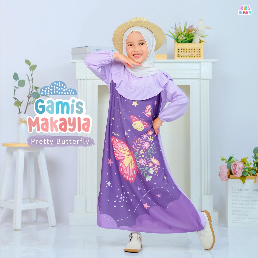 Kids Diary Plus - Gamis Anak Perempuan Makayla Motif Karakter 1-10 Tahun Stretch Digital Printing Ruffle Cantik Wudhu Friendly