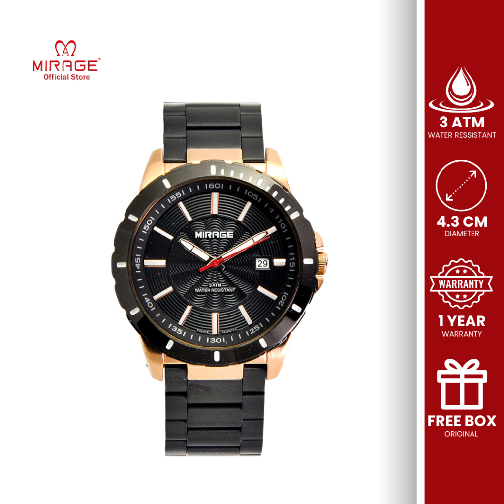Mirage Jam Tangan Pria Analog Formal Sporty Original Tahan Air 8549 / 8911 M Hitam Rosegold Garansi
