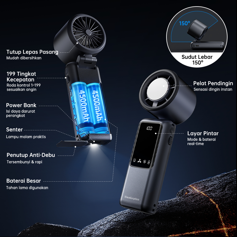 Tiankeplus TF50 Max Kipas Angin Portable Mini Turbo – Super Senyap, Baterai Tahan Lama 92 Jam, Kipas Lipat & Kipas Leher, Cocok untuk Kerja & Belajar